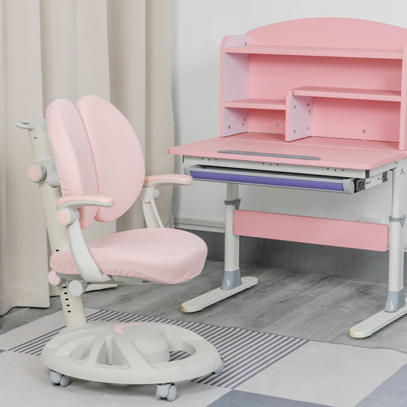 MEJA DAN KERUSI BELAJAR KETINGGIAN KANAK-KANAK: RXC0 Pink Tilting Desktop Set Untuk Duduk Sihat & Pertumbuhan Kanak-Kanak