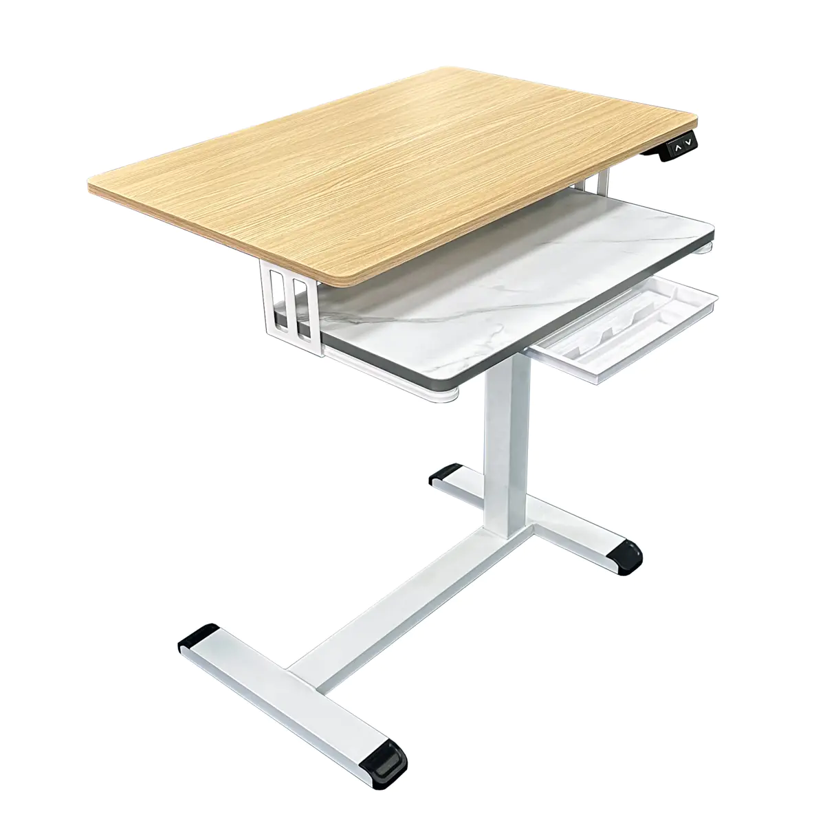 Bagaimanakah ciri pelarasan ketinggian dwi-butang pada meja RXD1-1-2RR membantu pengguna mencari postur kerja optimum mereka?